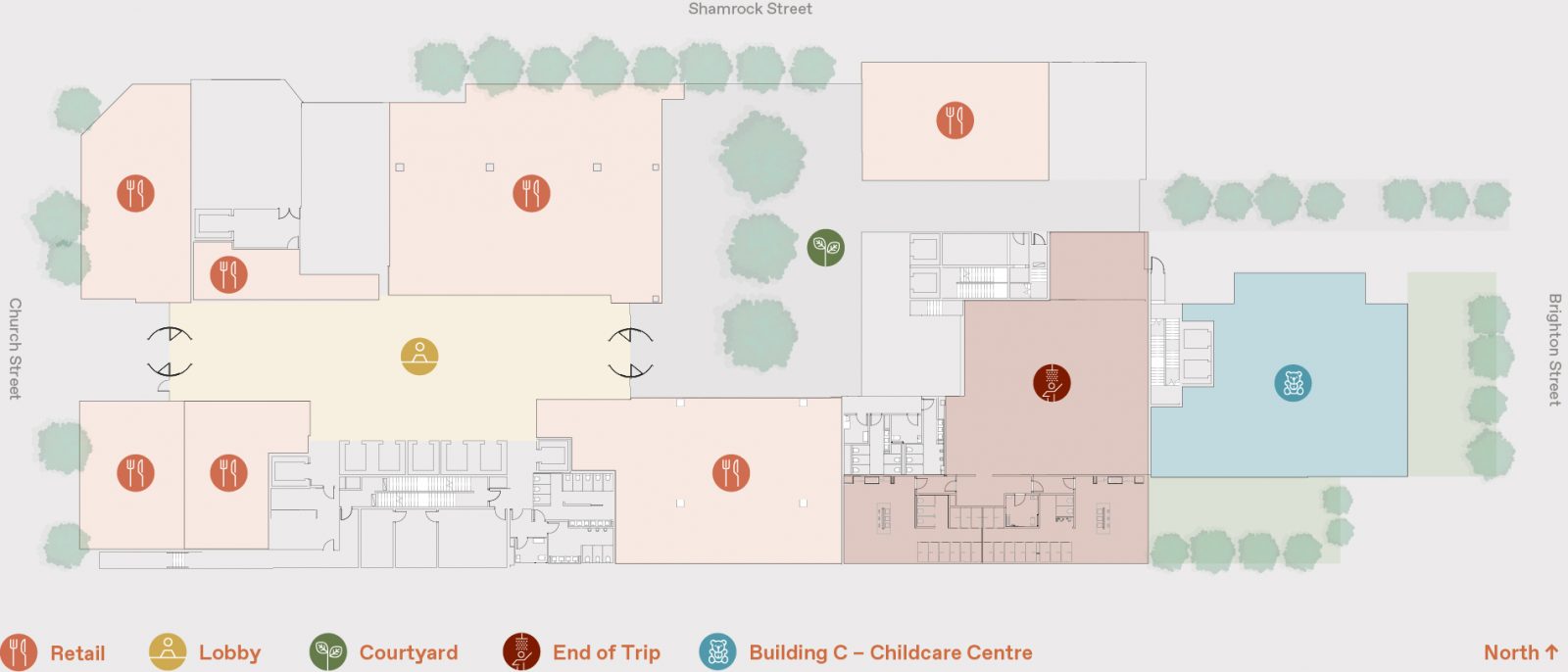 - 1,300m2 retail, food and beverage